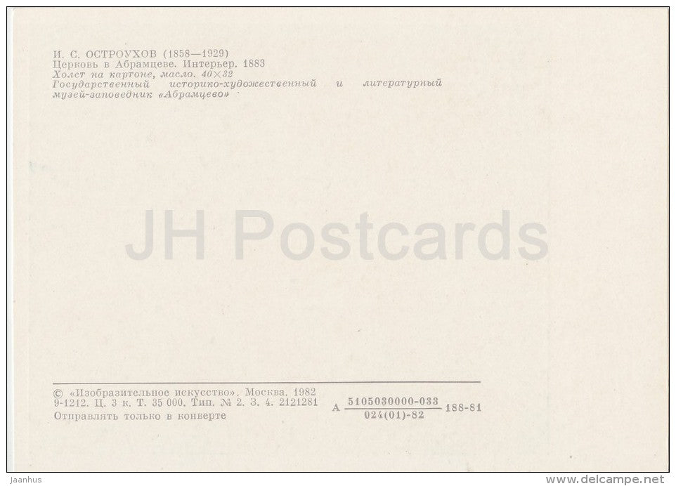 painting by I. Ostroukhov - Church in Abramtsevo . Interior , 1883 - Russian art - Russia USSR - 1982 - unused
