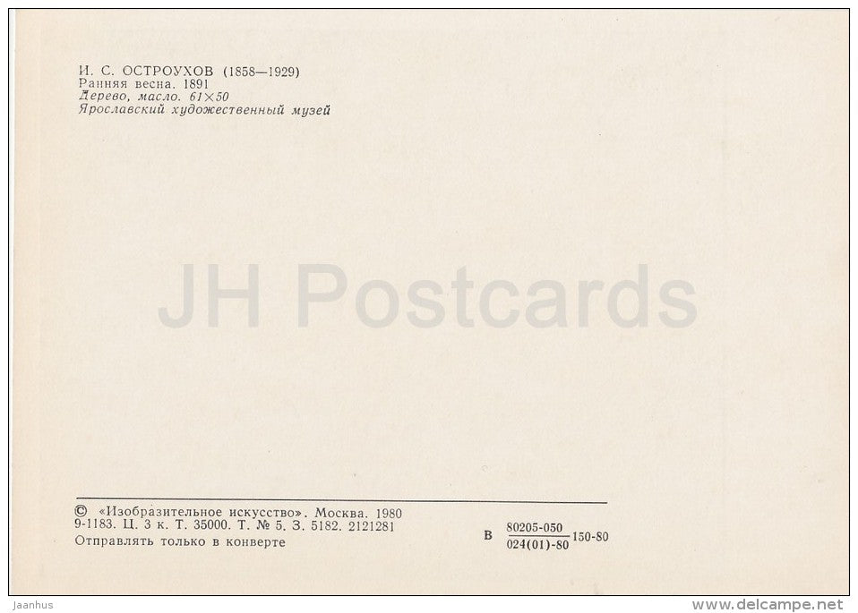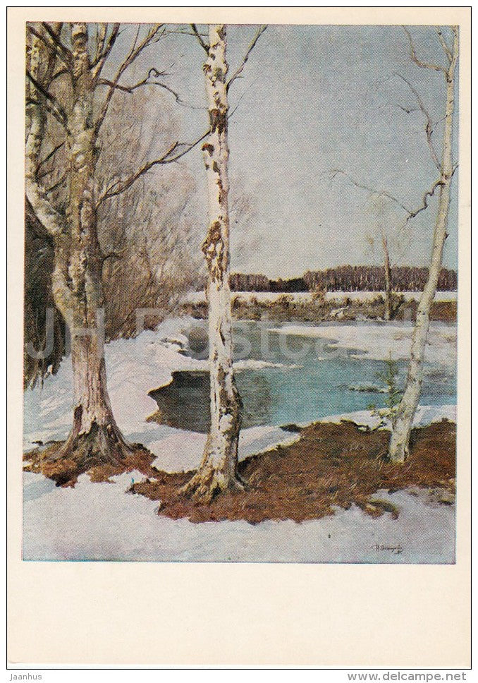 painting by I. Ostroukhov - Early Spring , 1891 - birch trees - Russian art - 1980 - Russia USSR - unused