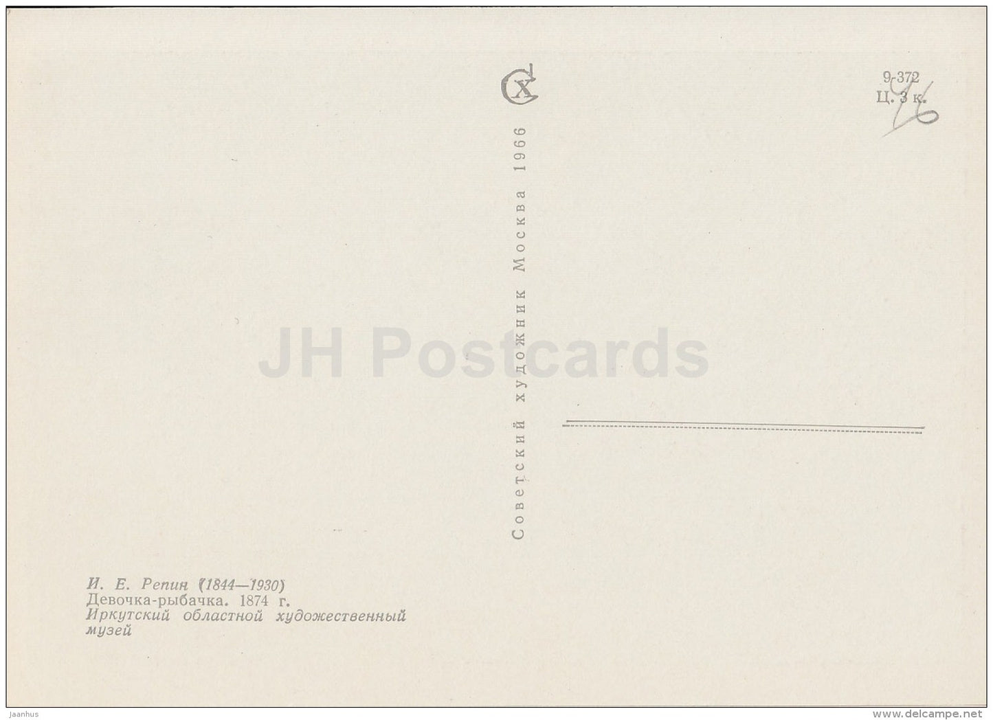painting by I. Repin - Girl Fisherwoman , 1874 - Russian art - 1966 - Russia USSR - unused