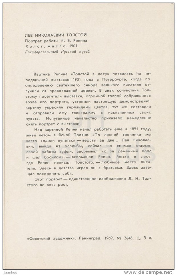 painting by I. Repin - Leo Tolstoy - Russian Writers - 1969 - Russia USSR - unused