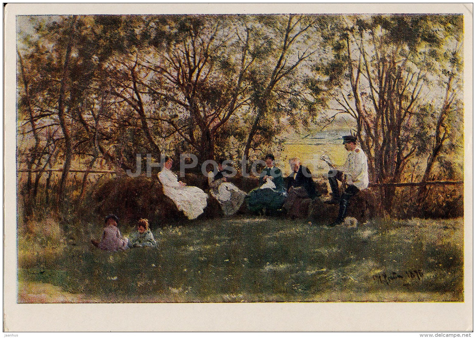 painting by I. Repin - On the turf bench , 1879 - Russian art - 1957 - Russia USSR - unused