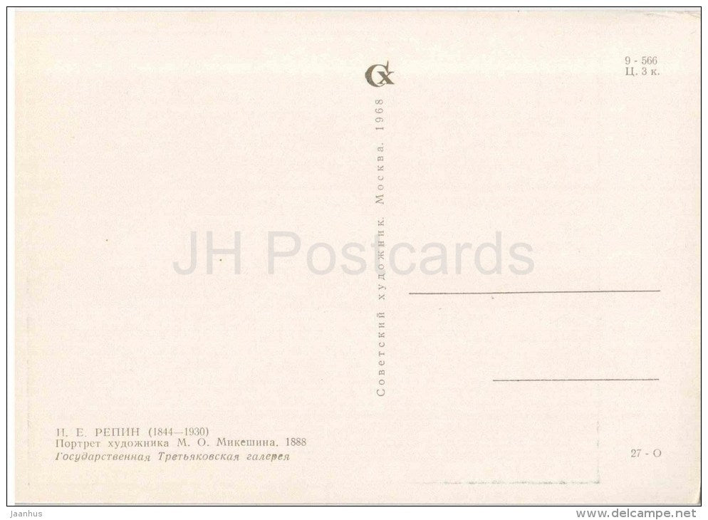 painting by I. Repin - Portrait of artist M. Mikeshin - russian art - unused
