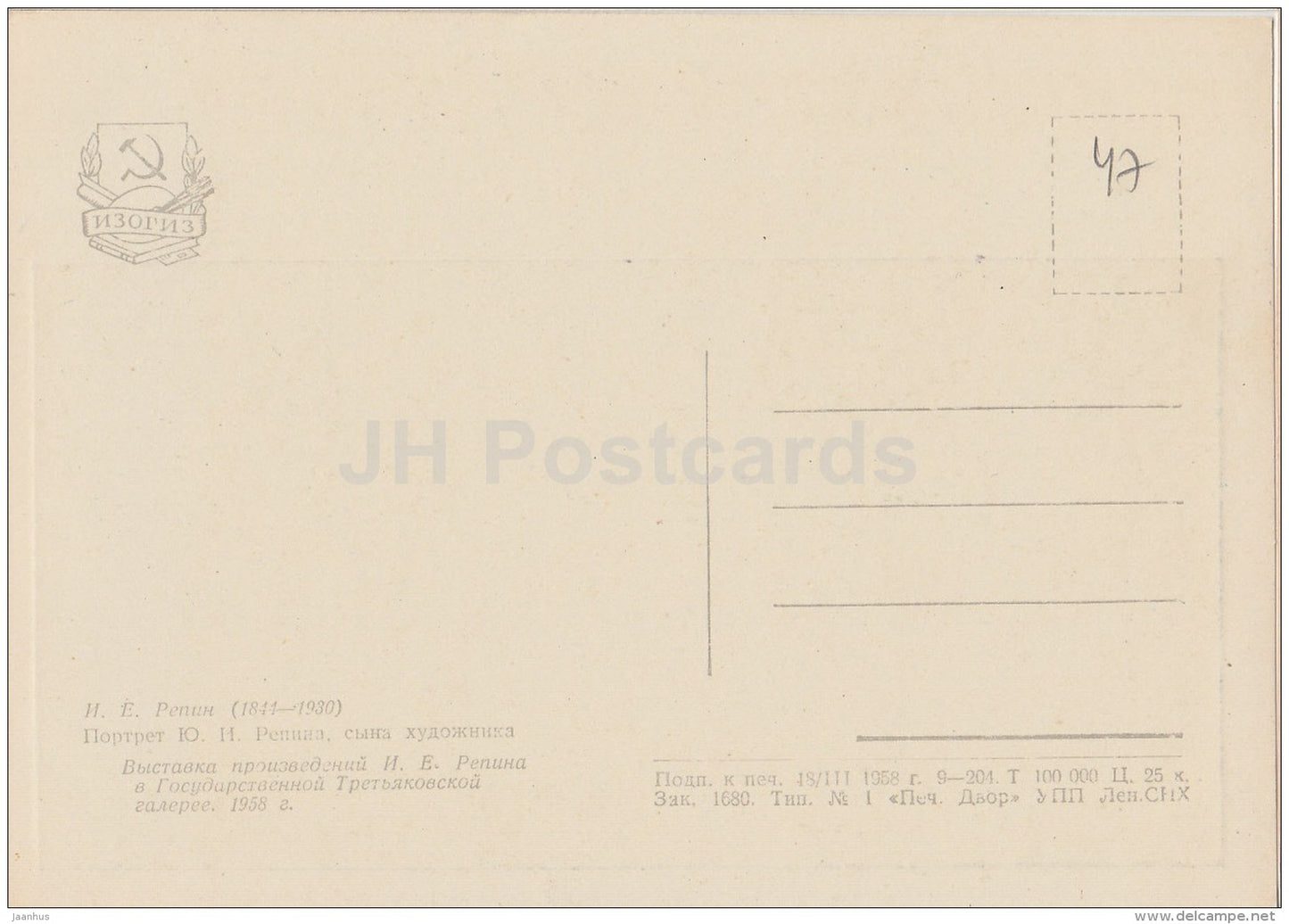 painting by I. Repin - Portrait of Artist Son - boy - Russian art - 1958 - Russia USSR - unused