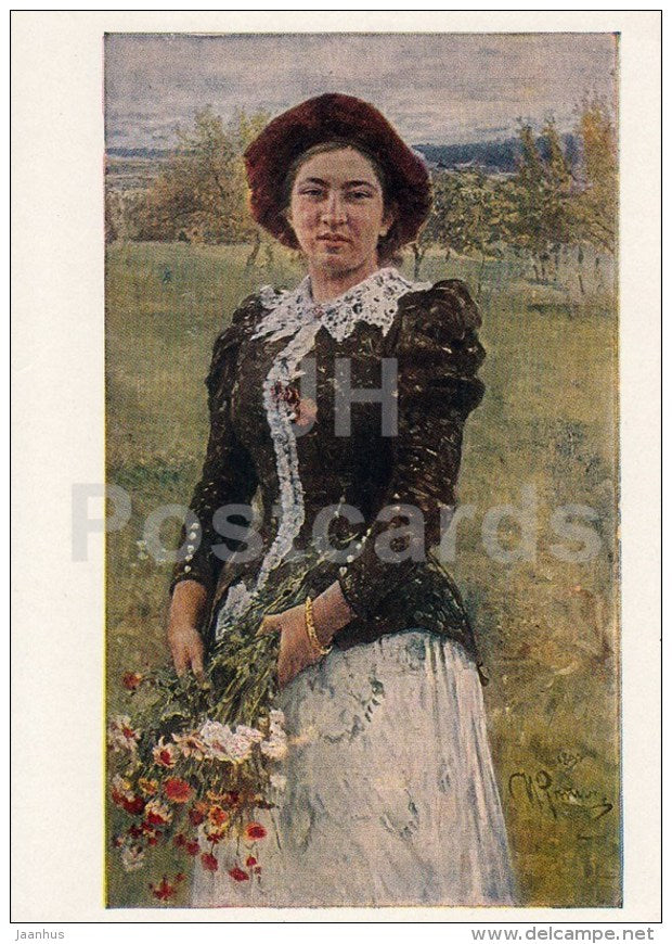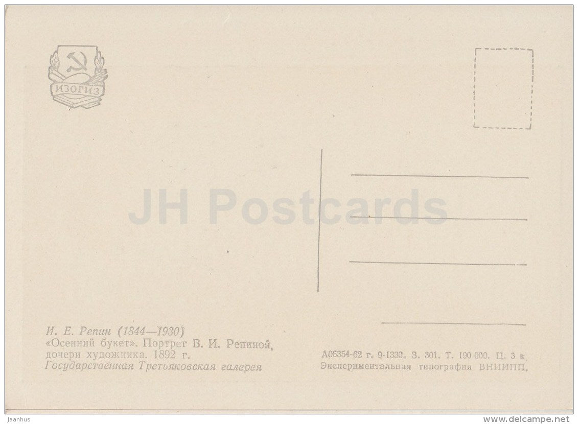 painting by I. Repin - Portrait of Repin´s Daughter , 1892 - Russian art - Russia USSR - 1962 - unused