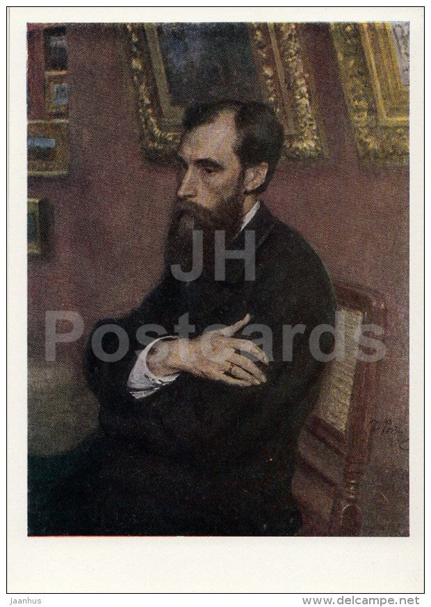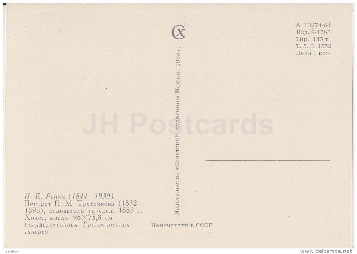 painting by I. Repin - Portrait of Russian art collector Tretyakov , 1883 - Russian Art - 1964 - Russia USSR - unused