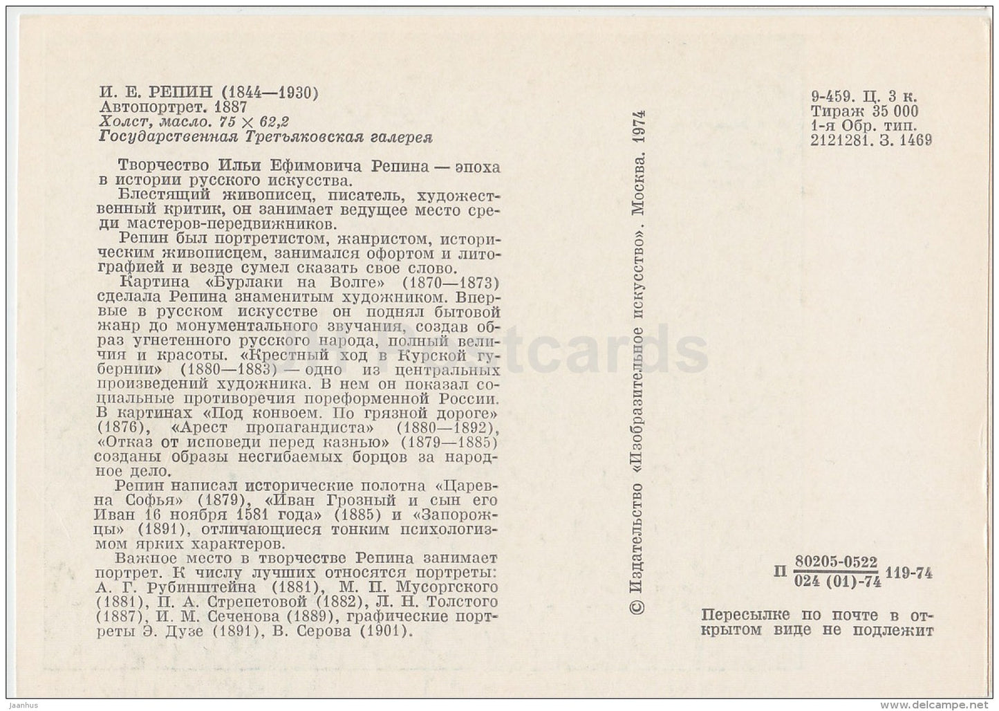 painting by I. Repin - Self-Portrait , 1880 - man - Russian art - 1974 - Russia USSR - unused