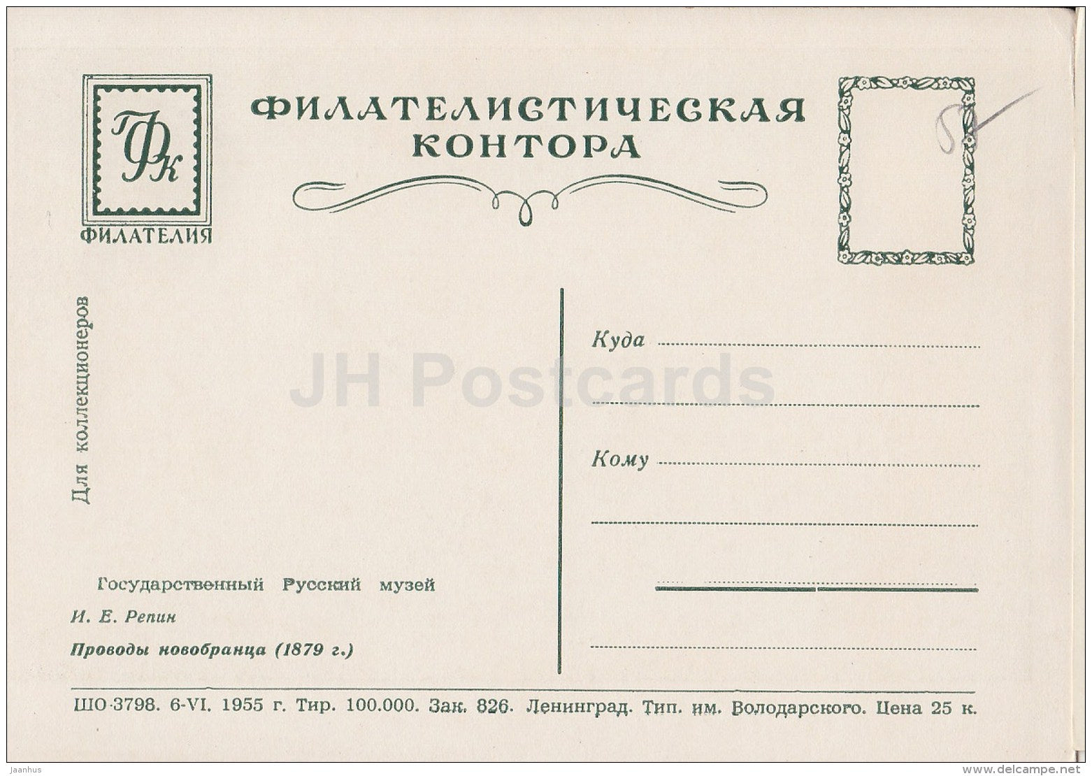 painting by I. Repin - Send-Off Rookie , 1879 - Russian art - 1955 - Russia USSR - unused