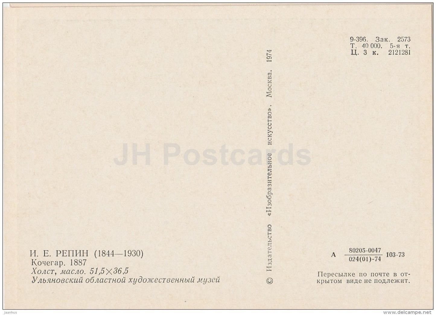 painting by I. Repin - Stoker , 1887 - man - worker - Russian art - 1974 - Russia USSR - unused