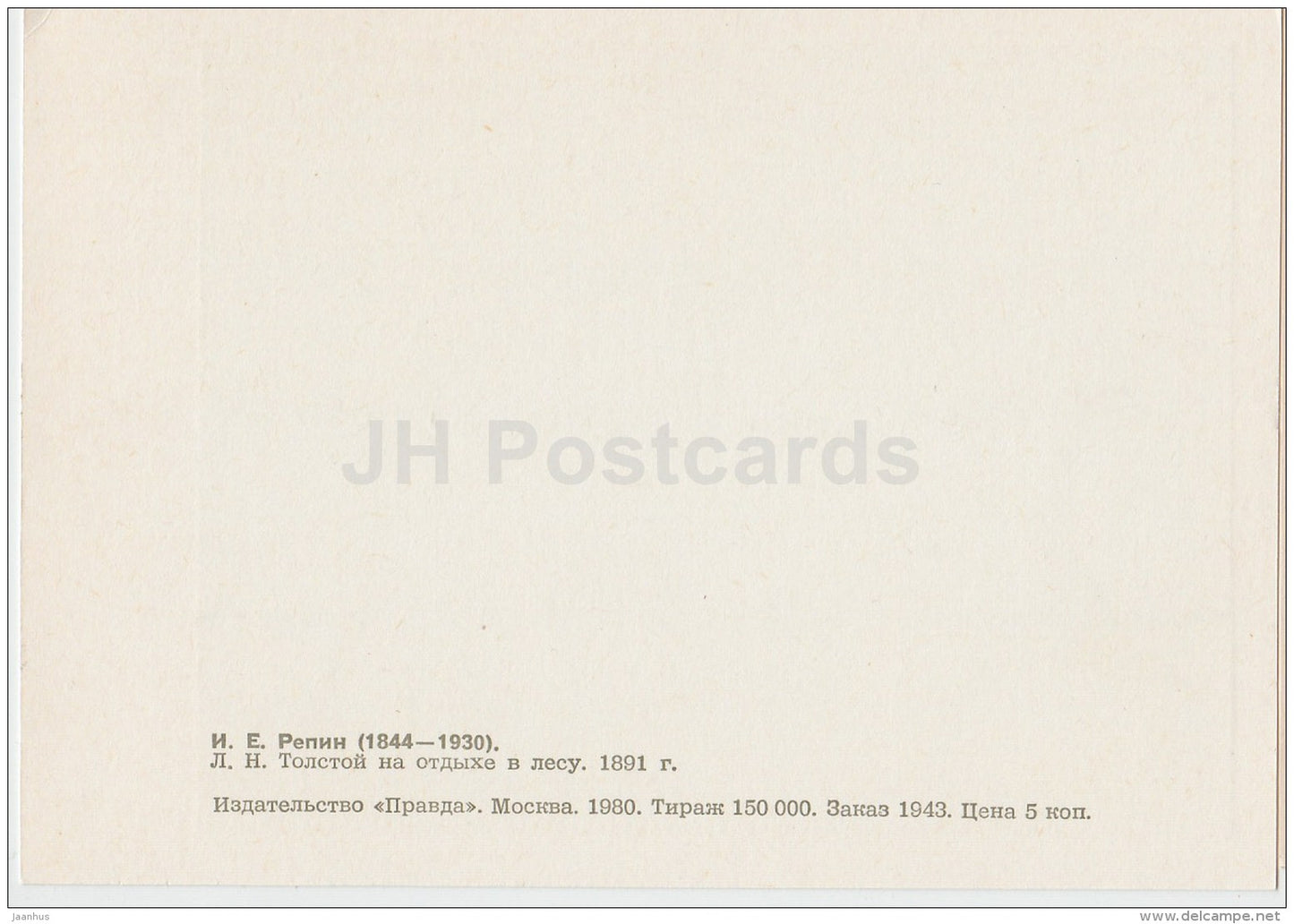painting by I. Repin - Writer Tolstoy on vacation in the woods , 1891 - Russian art - 1980 - Russia USSR - unused