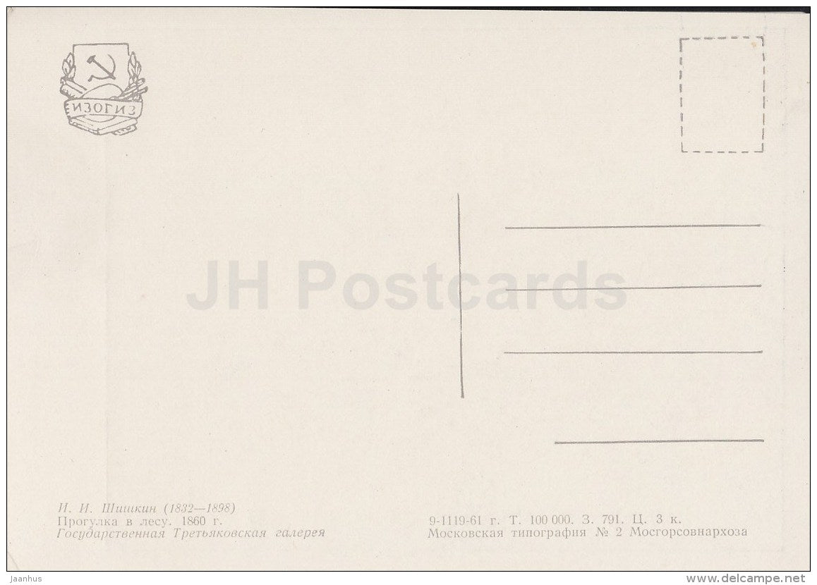 painting by I. Shishkin - A Wilk in the Forest , 1860 - dog - Russian Art - 1961 - Russia USSR - unused