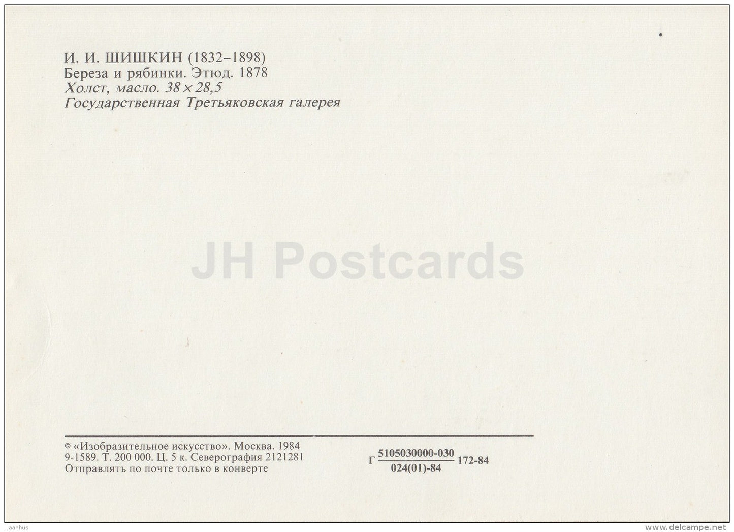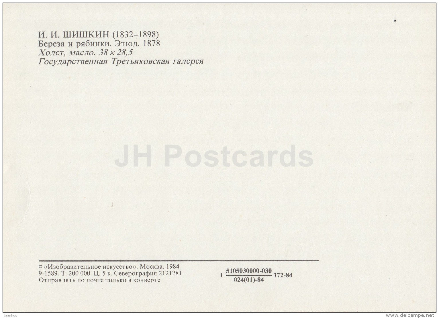 painting by I. Shishkin - Birch and Rowan Trees , 1878 - Russian art - 1984 - Russia USSR - unused