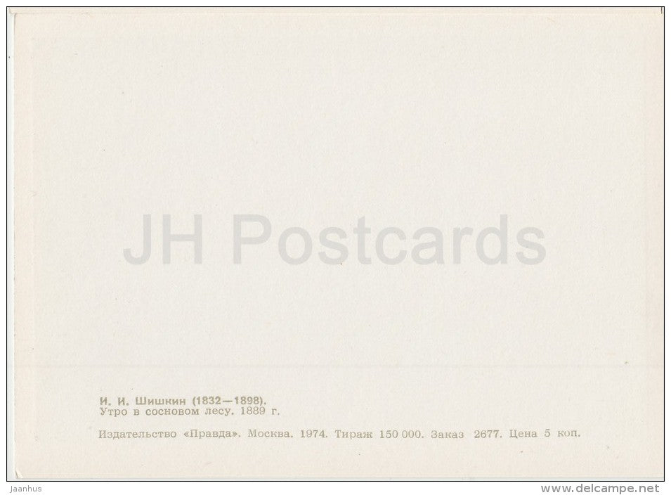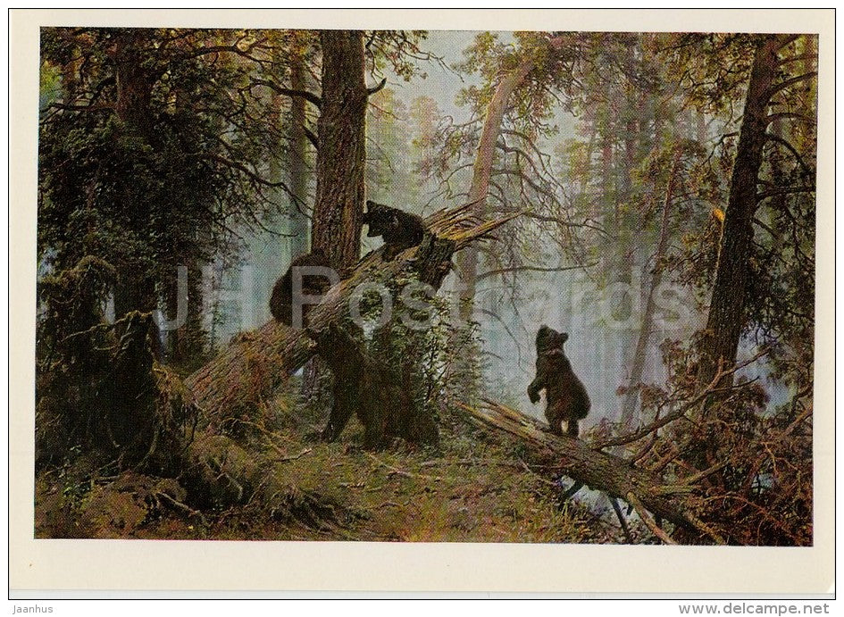 painting by I. Shishkin - Morning in the Pine Forest , 1889 - bear - Russian art - 1974 - Russia USSR - unused