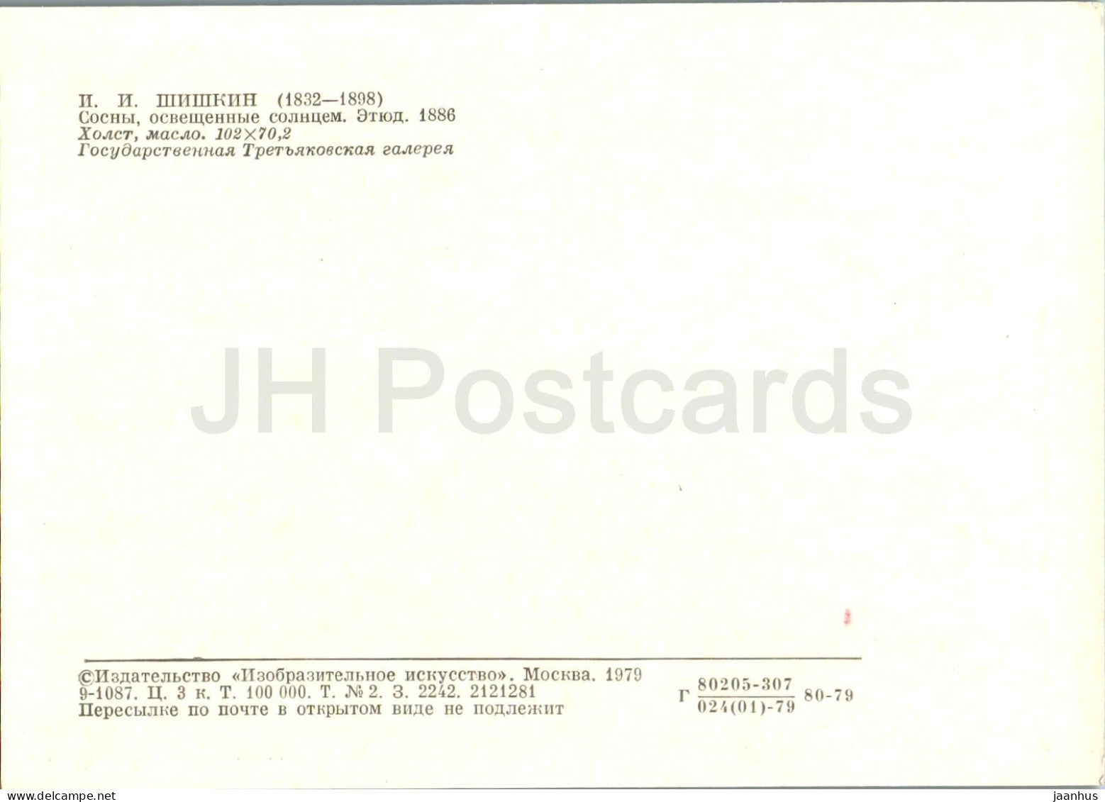 painting by I. Shishkin - Pine trees illuminated by the sun - Russian art - 1979 - Russia USSR - unused