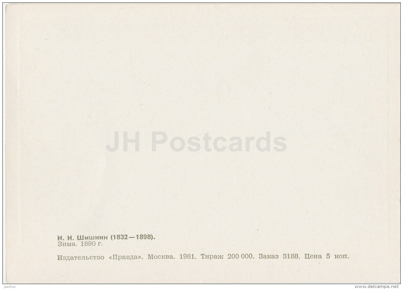 painting by I. Shishkin - Winter , 1890 - forest - Russian art - 1981 - Russia USSR - unused