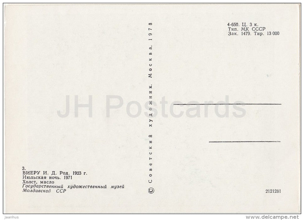 painting by I. Vieru - Night in July , 1971 - couple - Moldavian art - Russia USSR - 1978 - unused