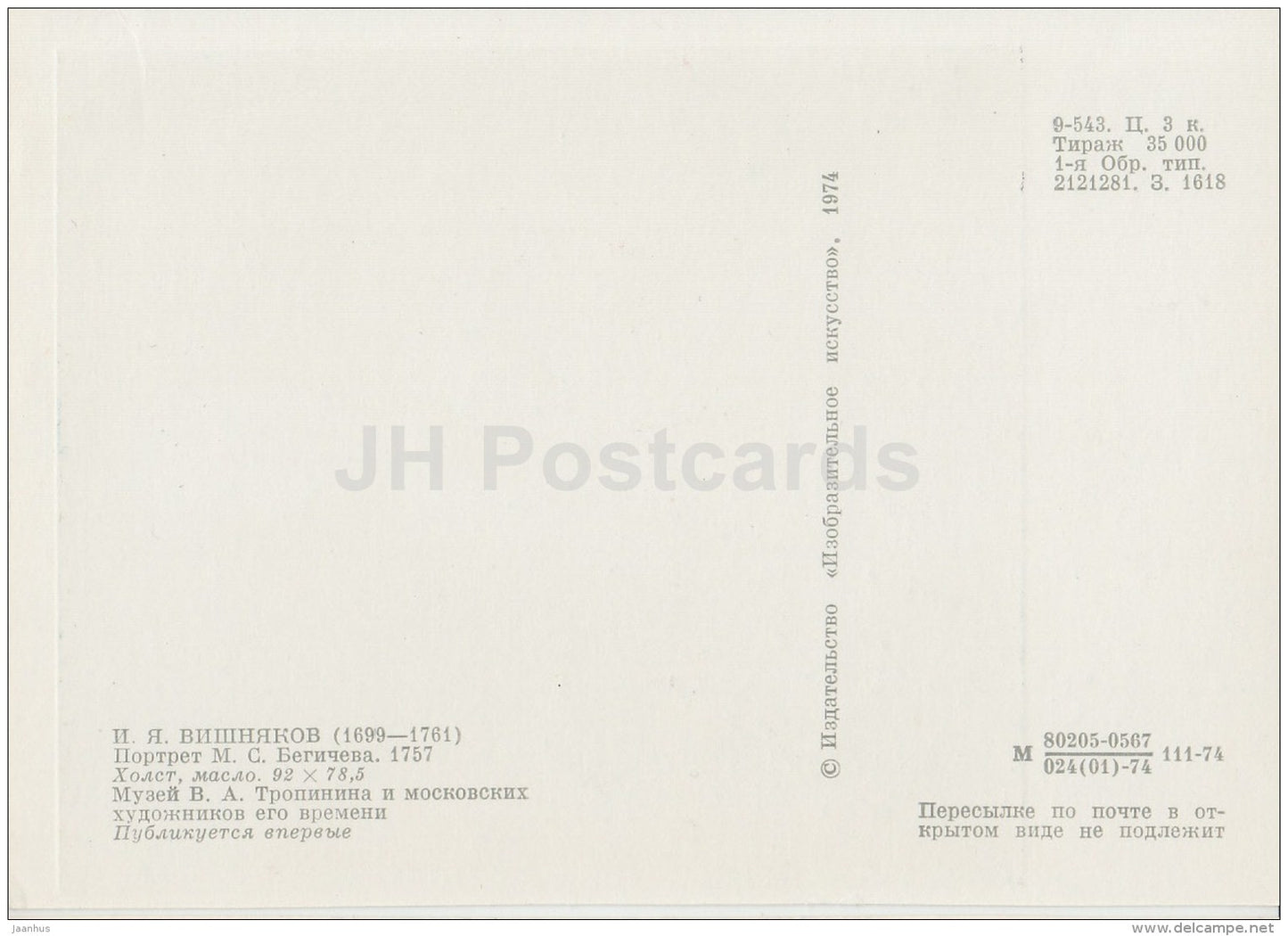 painting by I. Vishnyakov - Portrait of M. Begichev , 1757 - man - Russian art - 1974 - Russia USSR - unused