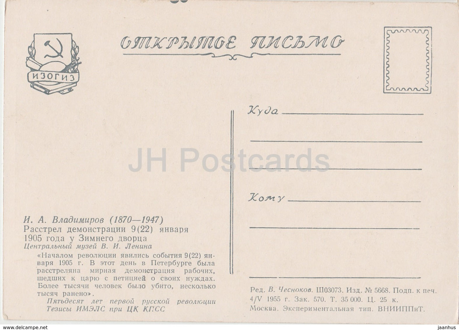 painting by I. Vladimirov - Shooting a demonstration in 1905 Winter Palace - Russian art - 1955 - Russia USSR - unused