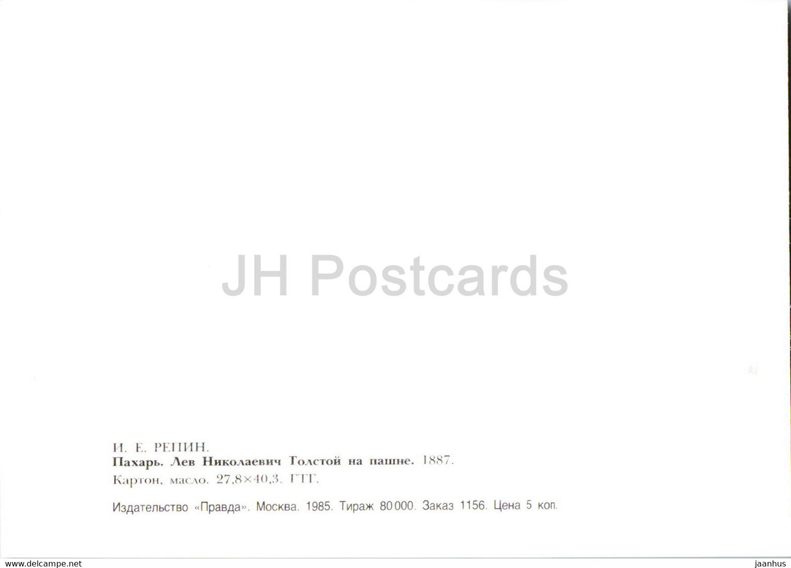 painting by Ilya Repin - Leo Tolstoy Ploughing - horse - Russian art - 1985 - Russia USSR - unused