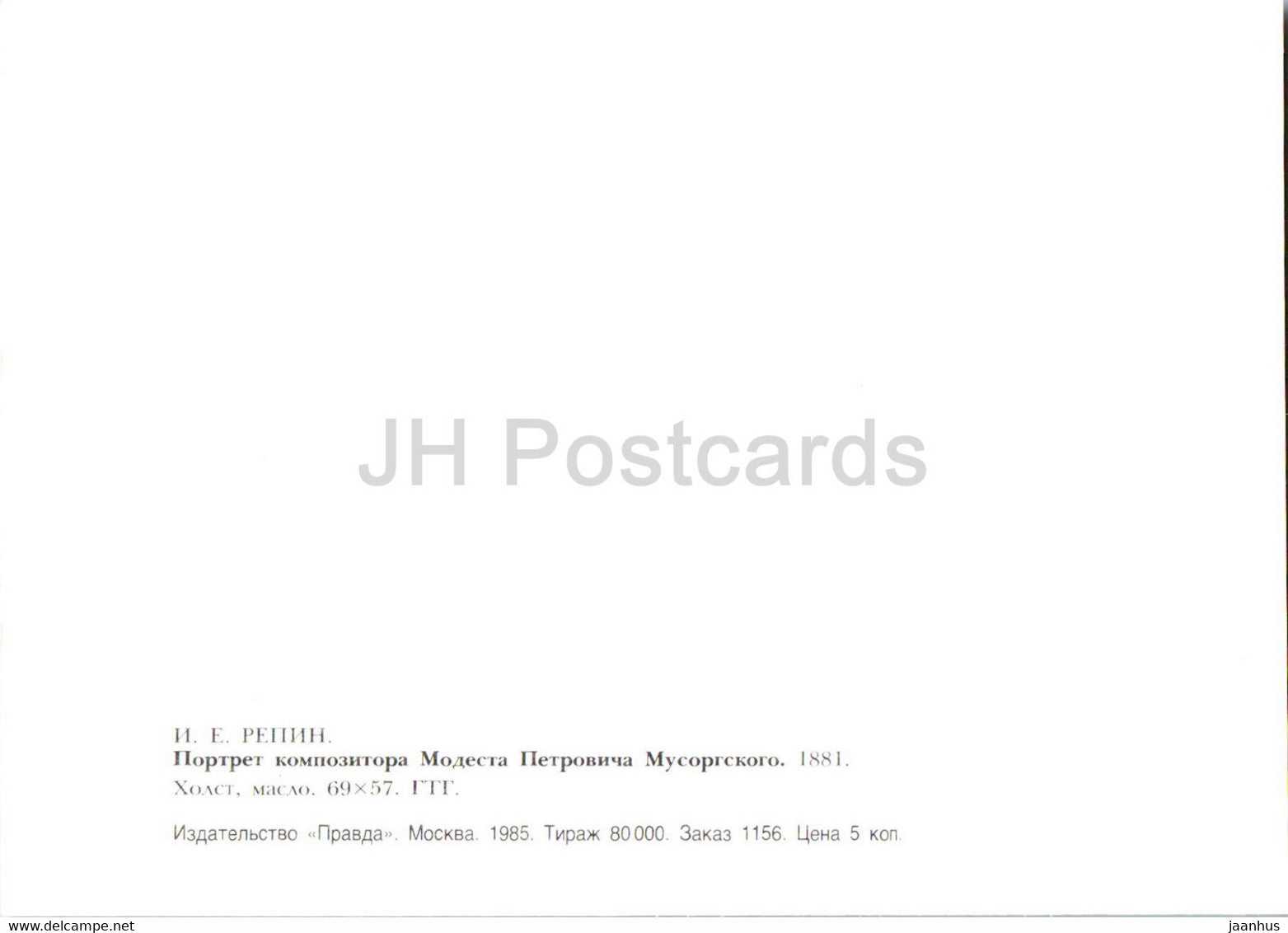 painting by Ilya Repin - Portrait of the Russian composer M. P. Mussorgsky - Russian art - 1985 - Russia USSR - unused