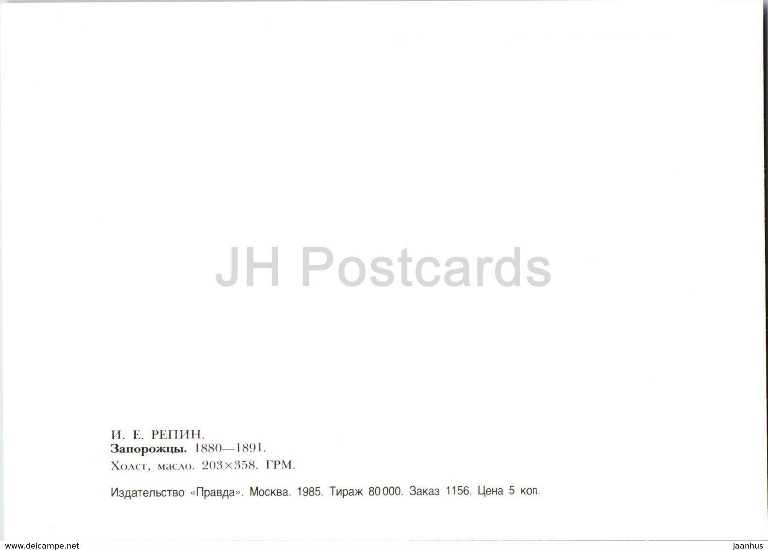 painting by Ilya Repin - Reply of the Zaporozhian Cossacks - Russian art - 1985 - Russia USSR - unused