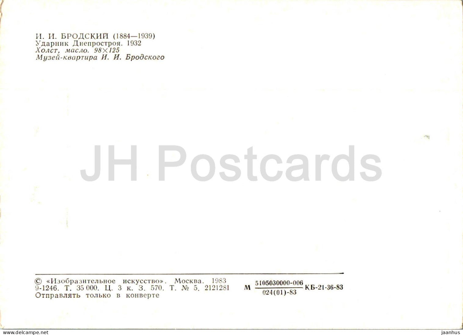 painting by Isaak Brodsky - Dneprostroy Worker - Russian art - 1983 - Russia USSR - unused