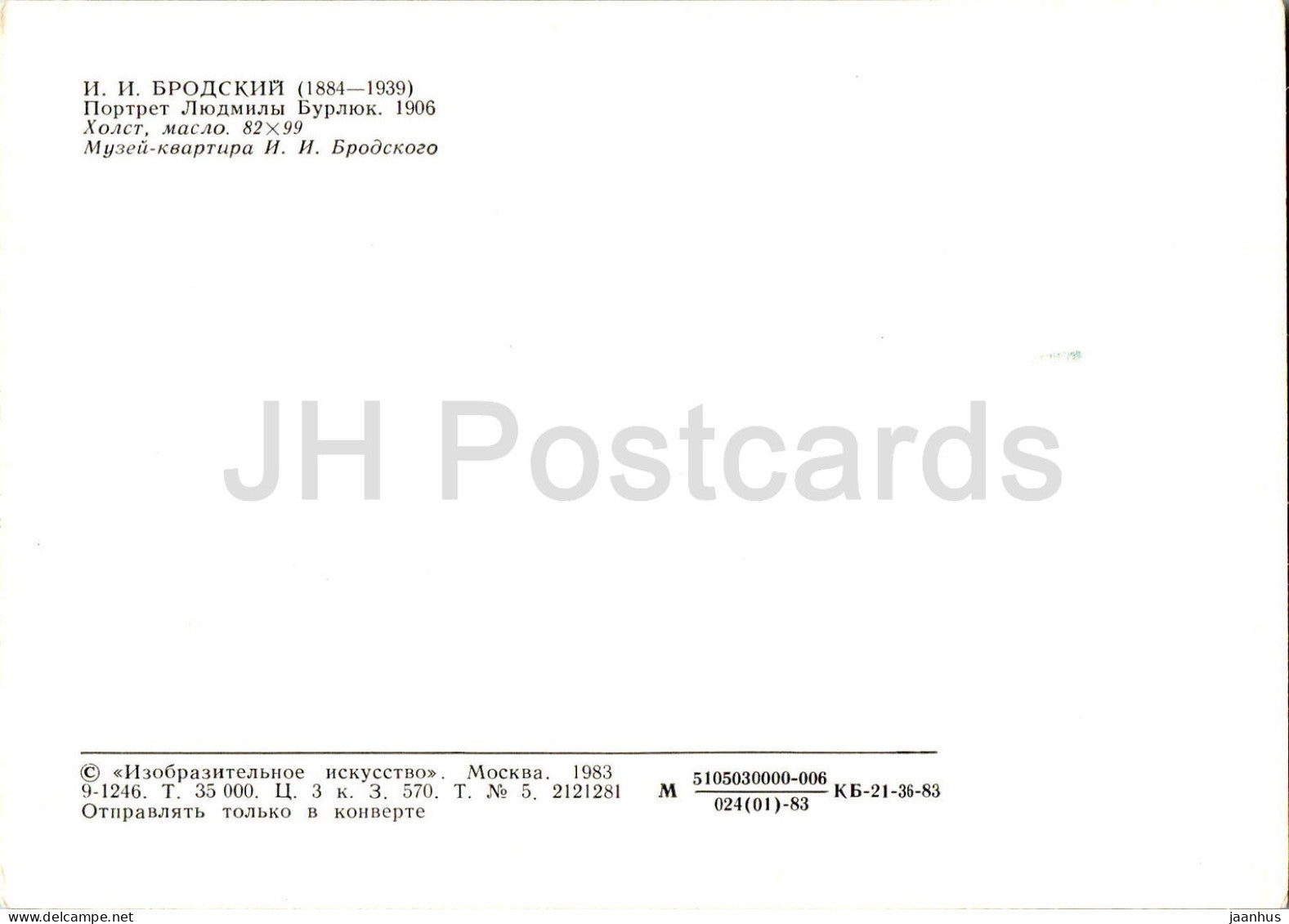 painting by Isaak Brodsky - Portrait Of Russian artist Lyudmila Burliuk - Russian art - 1983 - Russia USSR - unused