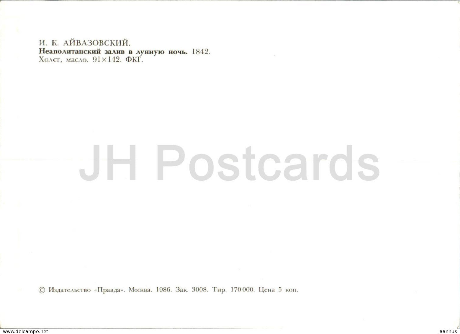 painting by Ivan Aivazovsky - Bay of Naples on a moonlit night - Russian art - 1986 - Russia USSR - unused