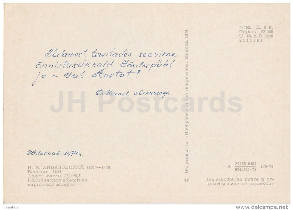 painting by Ivan Aivazovsky - Venice . Venezia , 1844 - sailing ship - Russian Art - 1974 - Russia USSR - used