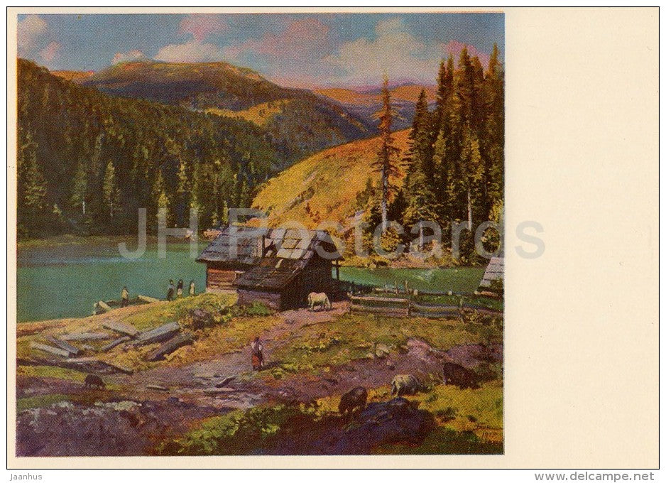 painting by J. Bokshay - Baltsatul , 1955 - mountains - Ukrainian art - Ukraine USSR - 1964 - unused