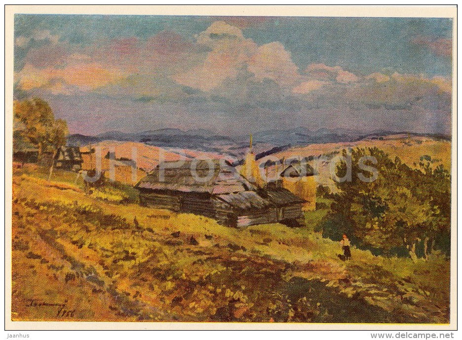painting by J. Bokshay - Hutsul´s Cottage , 1956 - Ukrainian art - Ukraine USSR - 1964 - unused