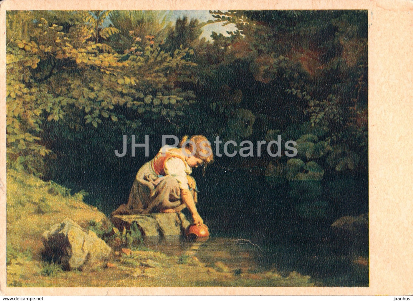painting by J. Koler - Girl at the spring - Estonian art - 1958 - Estonia USSR - unused
