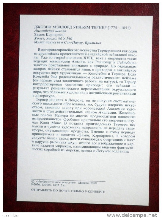 painting by J. M. W. Turner - Caernarfon Castle - english art - unused