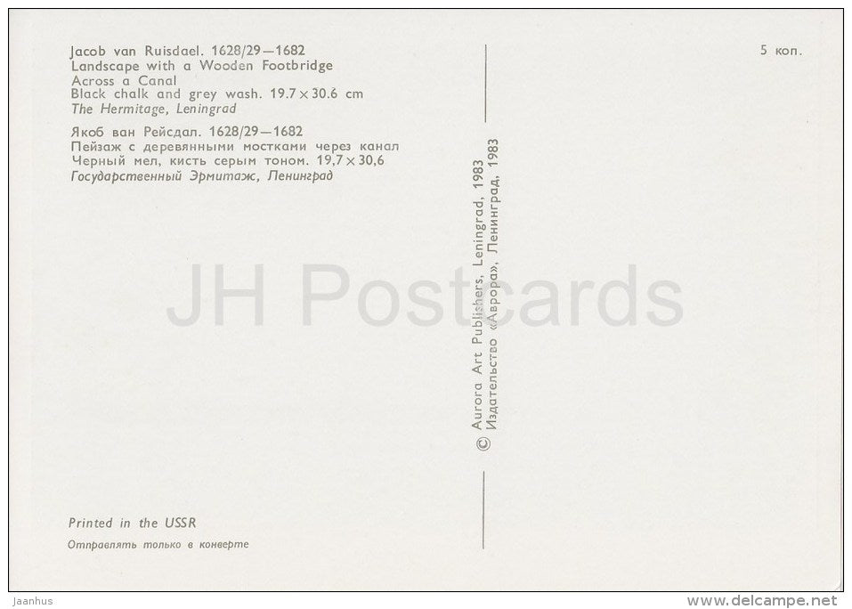 painting by Jacob van Ruisdael - Landscape with a Wooden Footbridge - Dutch art - 1983 - Russia USSR - unused