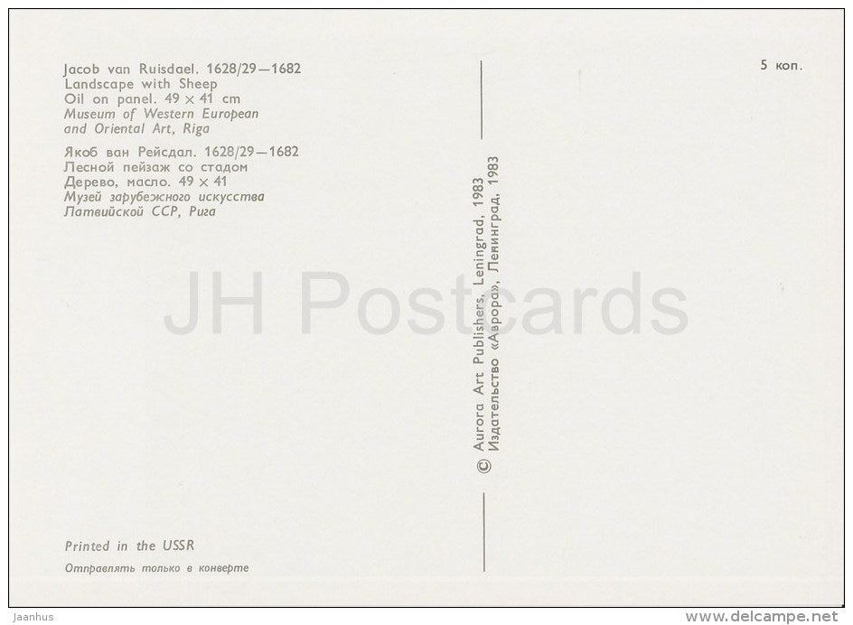 painting by Jacob van Ruisdael - Landscape with Sheep - Dutch art - 1983 - Russia USSR - unused