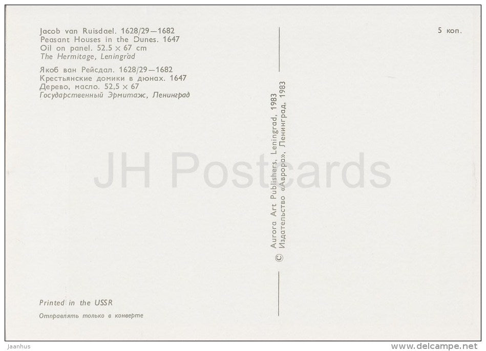 painting by Jacob van Ruisdael - Peasant Houses in the Dunes , 1647 - Dutch art - 1983 - Russia USSR - unused