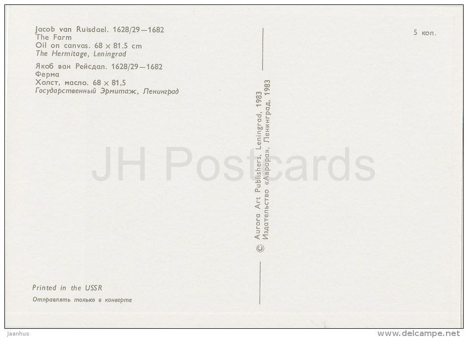 painting by Jacob van Ruisdael - The Farm - Dutch art - 1983 - Russia USSR - unused