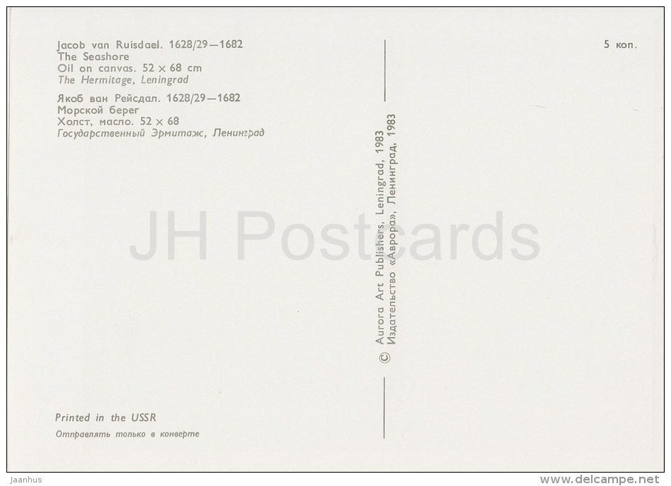 painting by Jacob van Ruisdael - The Seashore - Dutch art - 1983 - Russia USSR - unused