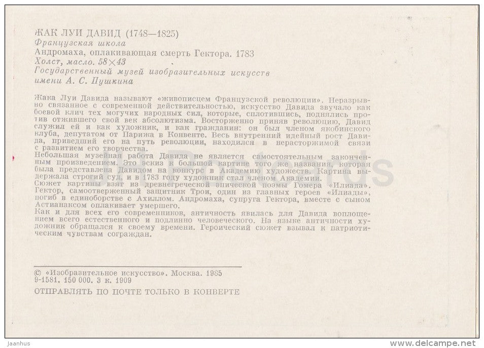 painting by Jacques-Louis David - Andromache mourning the death of Hector - French art - Russia USSR - 1985 - unused