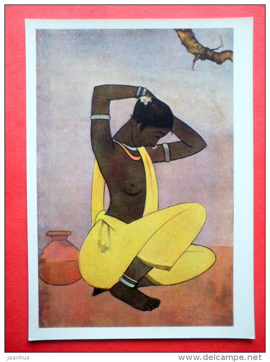 painting by Jamini Roy - Toilet - woman - contemporary art - art of india - unused