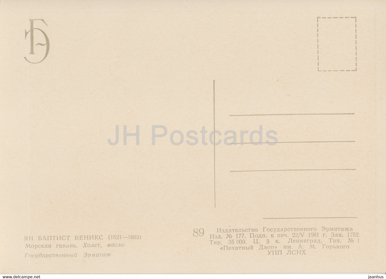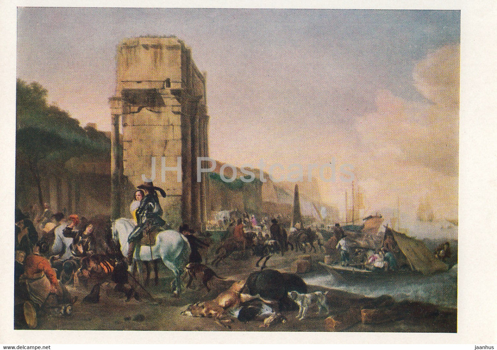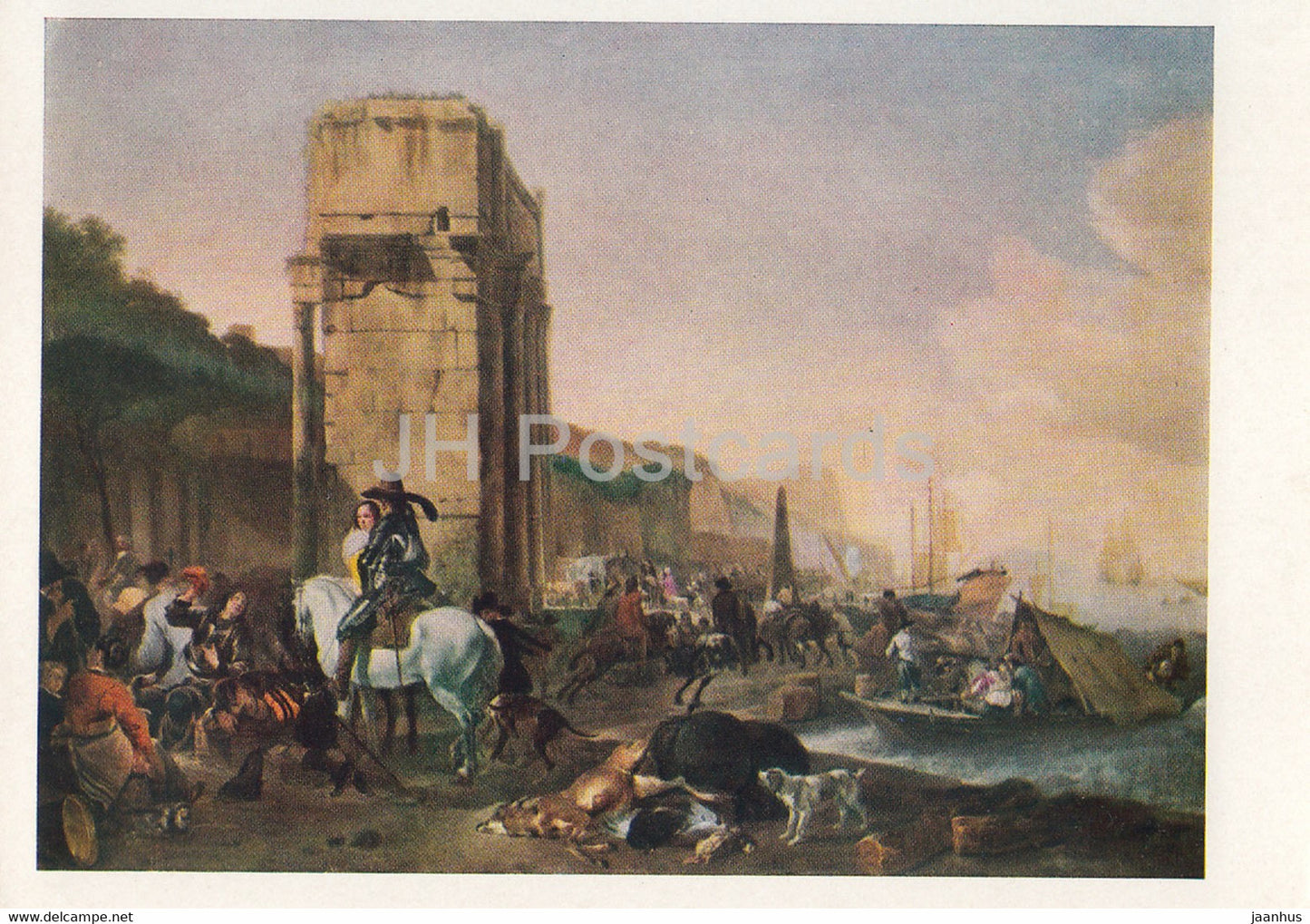 painting by Jan Baptist Weenix - Sea Port - horse - dog - Dutch art - 1961 - Russia USSR - unused