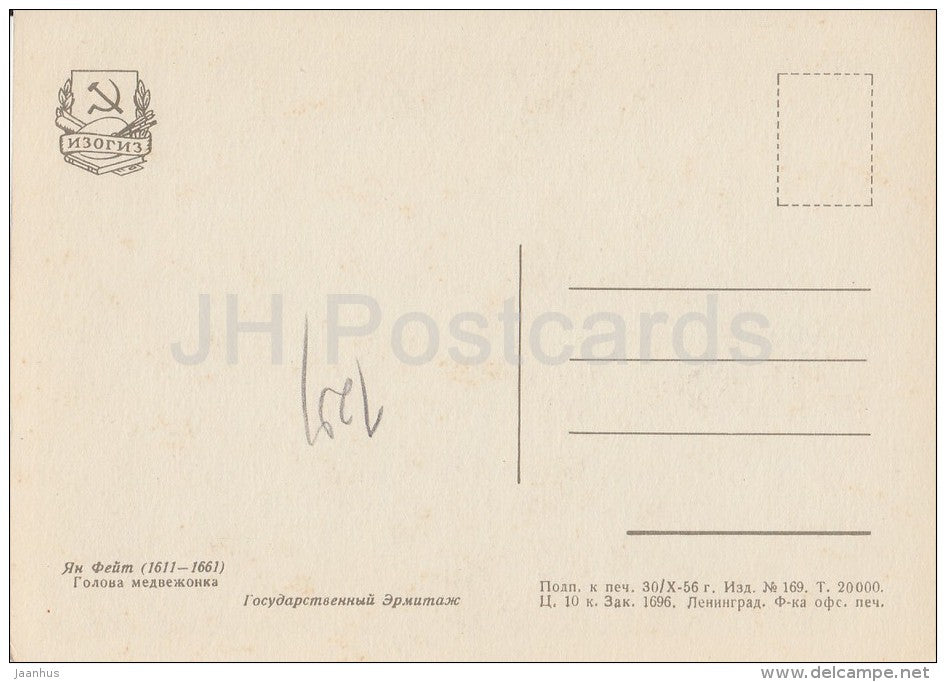 painting by Jan Fyt - Bear Head - Flemish art - 1956 - Russia USSR - unused