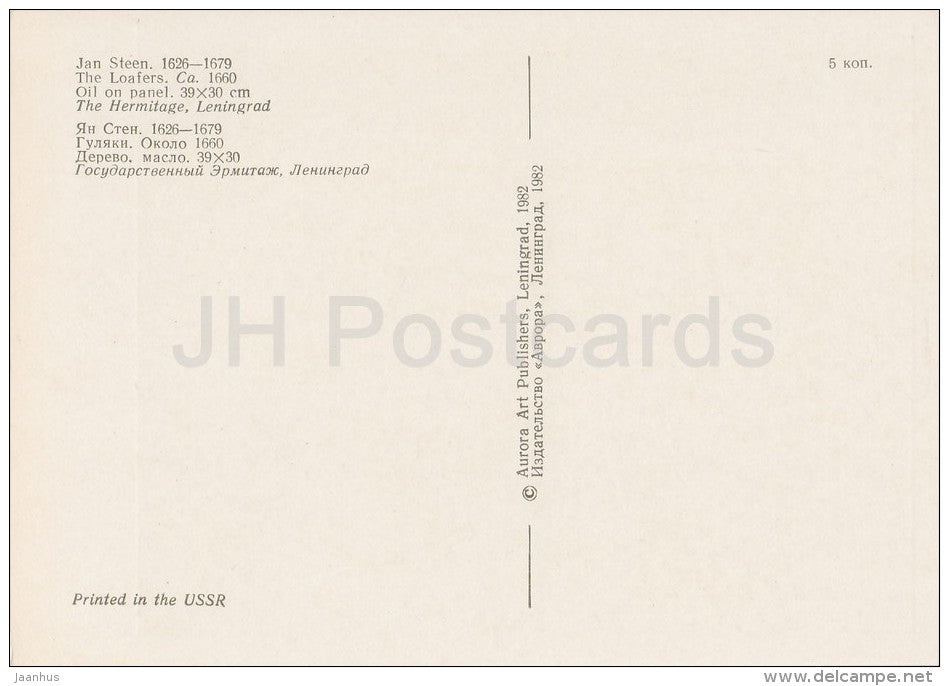 painting by Jan Steen - The Loafers , 1660 - Dutch art - Russia USSR - 1982 - unused