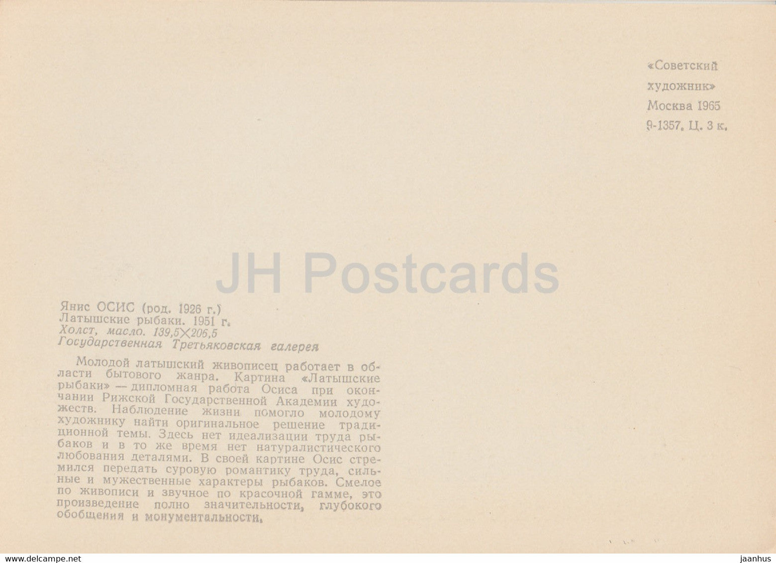 painting by Janis Osis - Latvian Fishermen - ship - Latvian art - 1965 - Russia USSR - unused