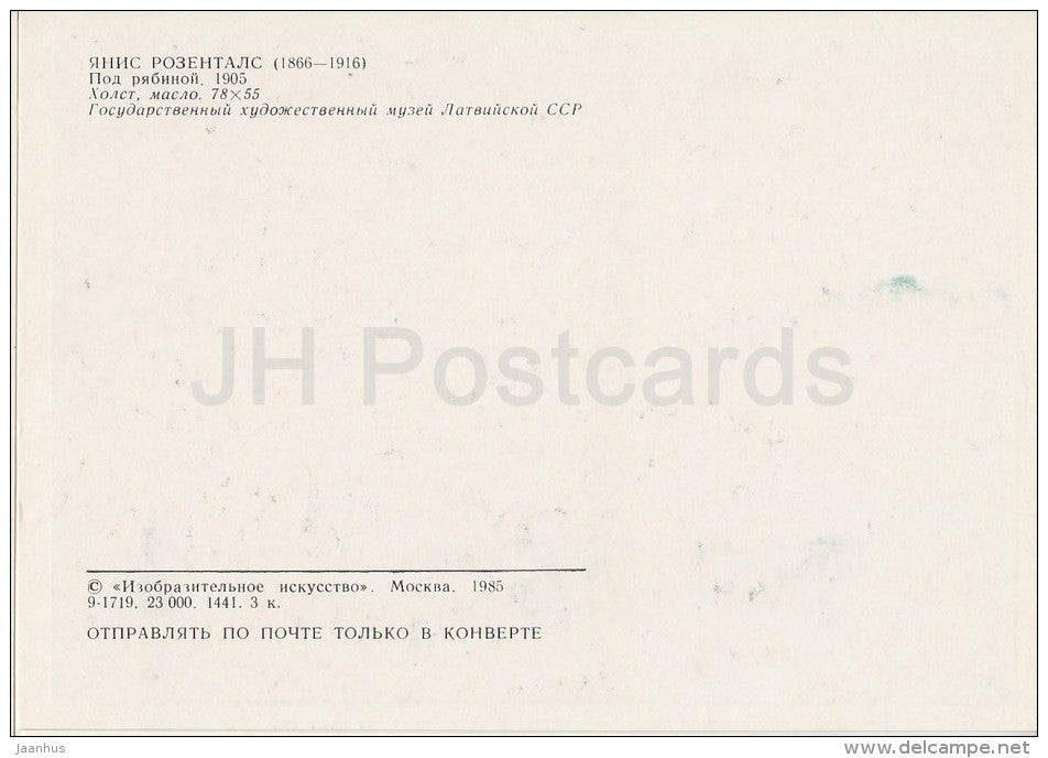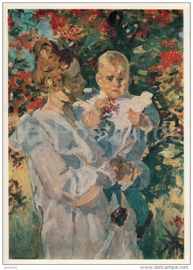 painting by Janis Rozentals - Under Rowan Tree , 1905 - mother and child - Latvian art - Russia USSR - 1985 - unused