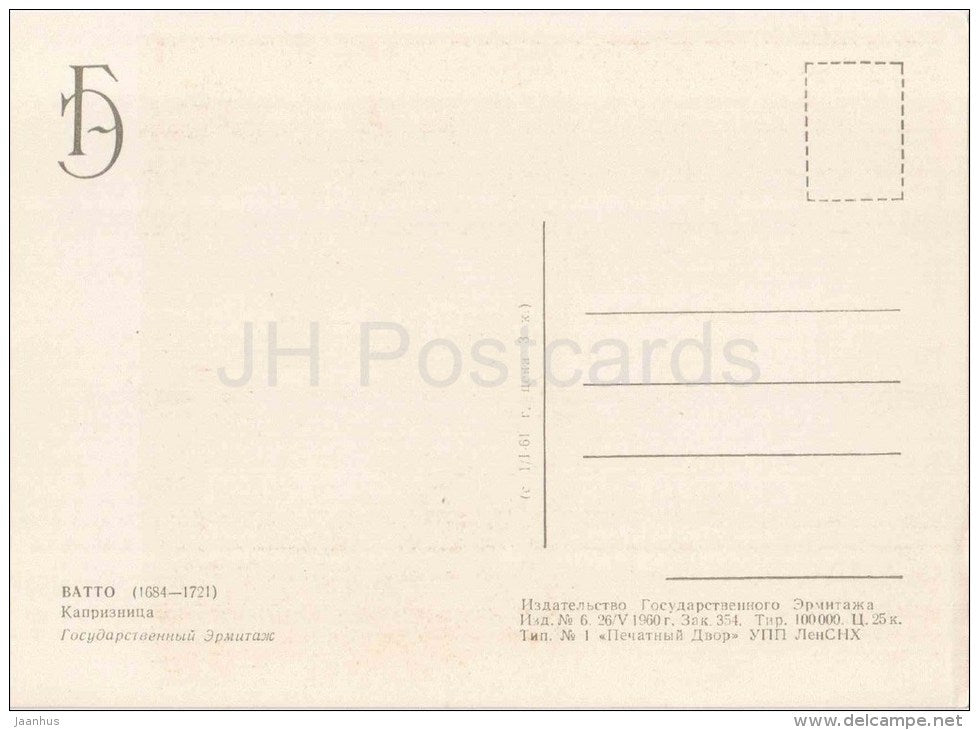 painting by Jean-Antoine Watteau - Capricious - woman and man - french art - unused