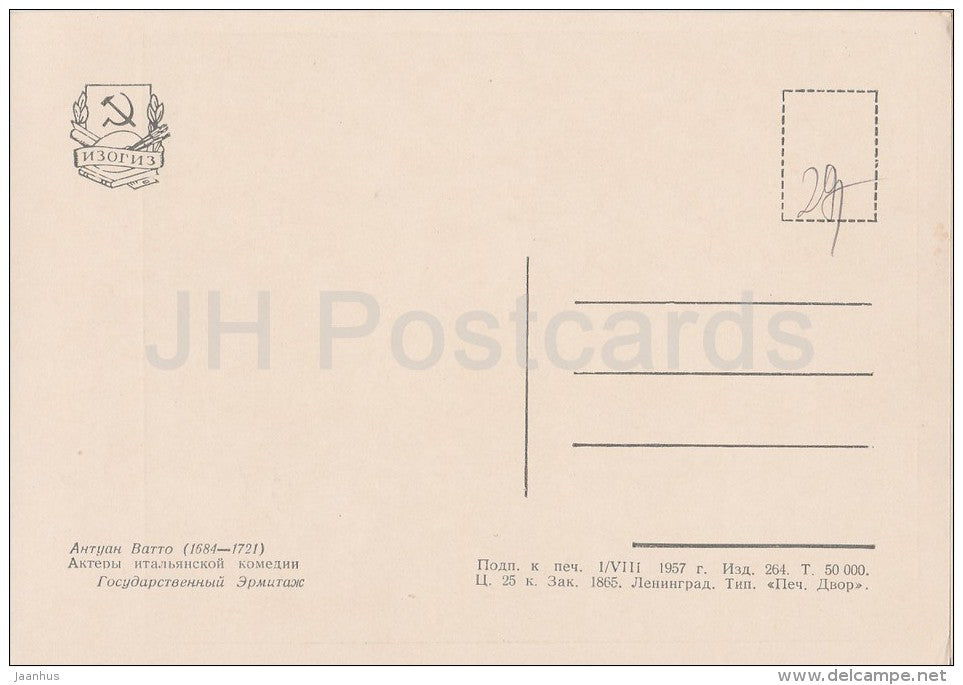 painting by Jean-Antoine Watteau - The actors Italian Comedy - French art - 1957 - Russia USSR - unused