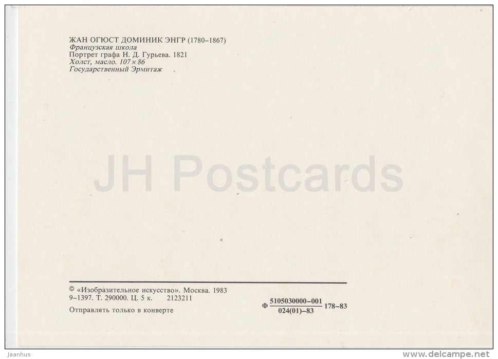 painting by Jean-Auguste-Dominique Ingres - Portrait of Count Nikolay Guryev - French art - Russia USSR - 1983 - unused