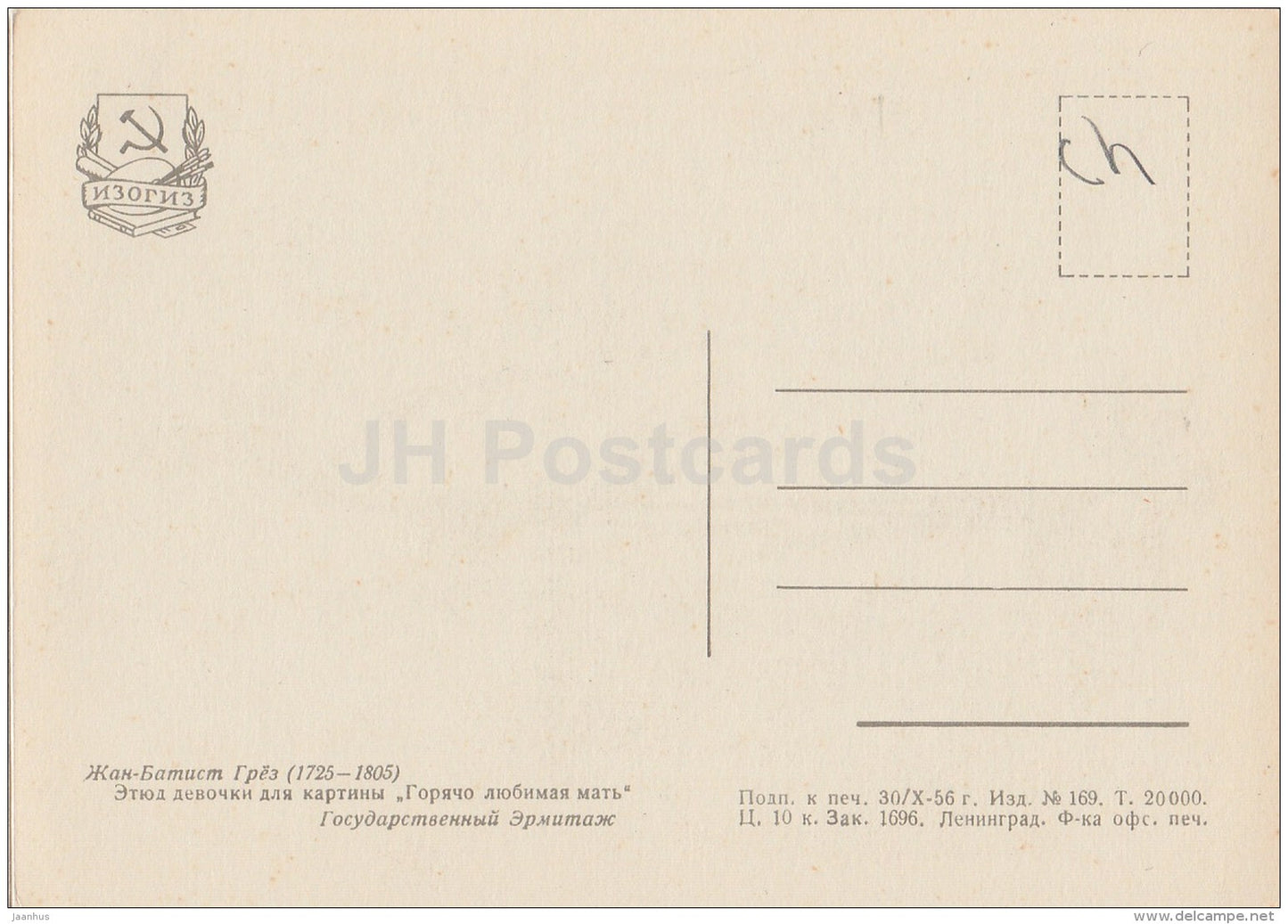 painting by Jean-Baptiste Greuze - Girl . Sketch - French art - 1956 - Russia USSR - unused