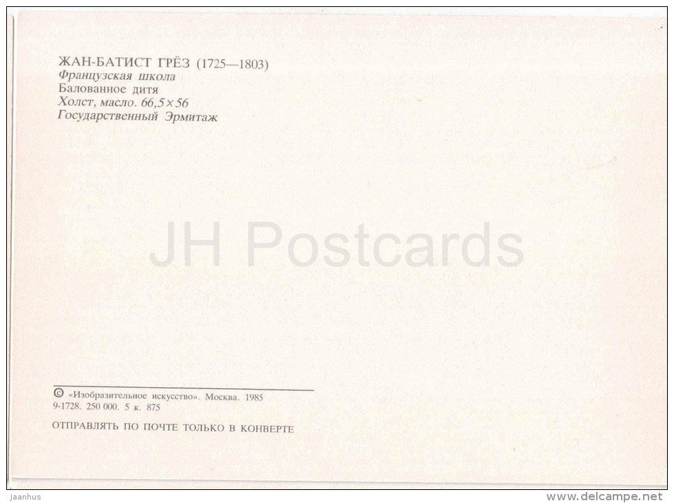painting by Jean-Baptiste Greuze - Indulged Child - boy - dog - french art - unused