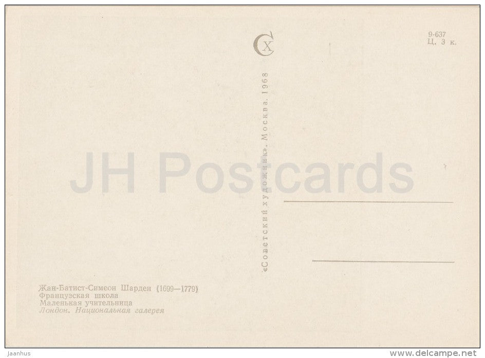 painting by Jean-Baptiste-Simeon Chardin - Little Teacher - French art - 1968 - Russia USSR - unused